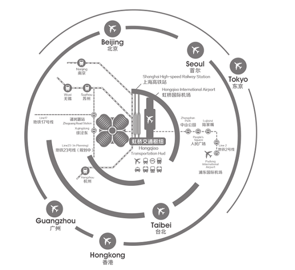 国家会展中心(上海)地处长三角核心腹地,坐落在上海虹桥商务区核心区西部,与虹桥交通枢纽直线距离仅1.5公里,通过空中连廊、地下通道及地铁2号线与上海虹桥火车站、虹桥机场紧密相连,周边高速路网四通八达,1至2小时可到达长三角各主要城市,航空2至3小时可直达亚太主要经济城市。