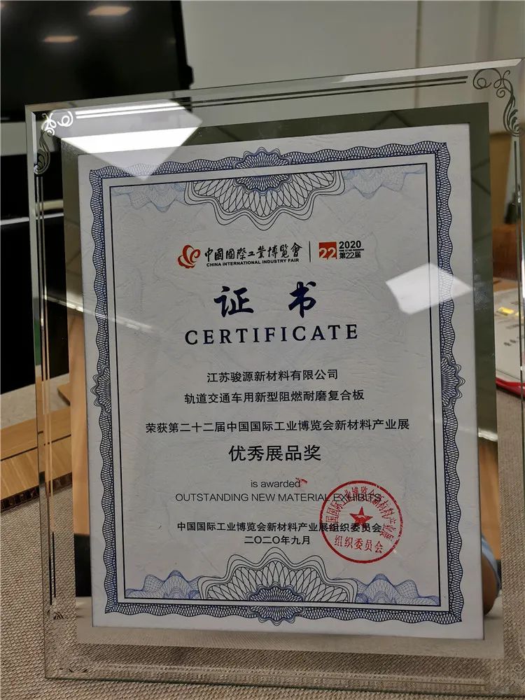 在前不久召开的第22届中国国际工业博览会上,位于如东经济开发区的江苏骏源新材料有限公司带着自主研发的“轨道交通车用新型阻燃耐磨复合板”参展,这一新产品采用“织物增强”技术,革命性地弥补了传统阻燃板材的生产缺陷,为国内首创。