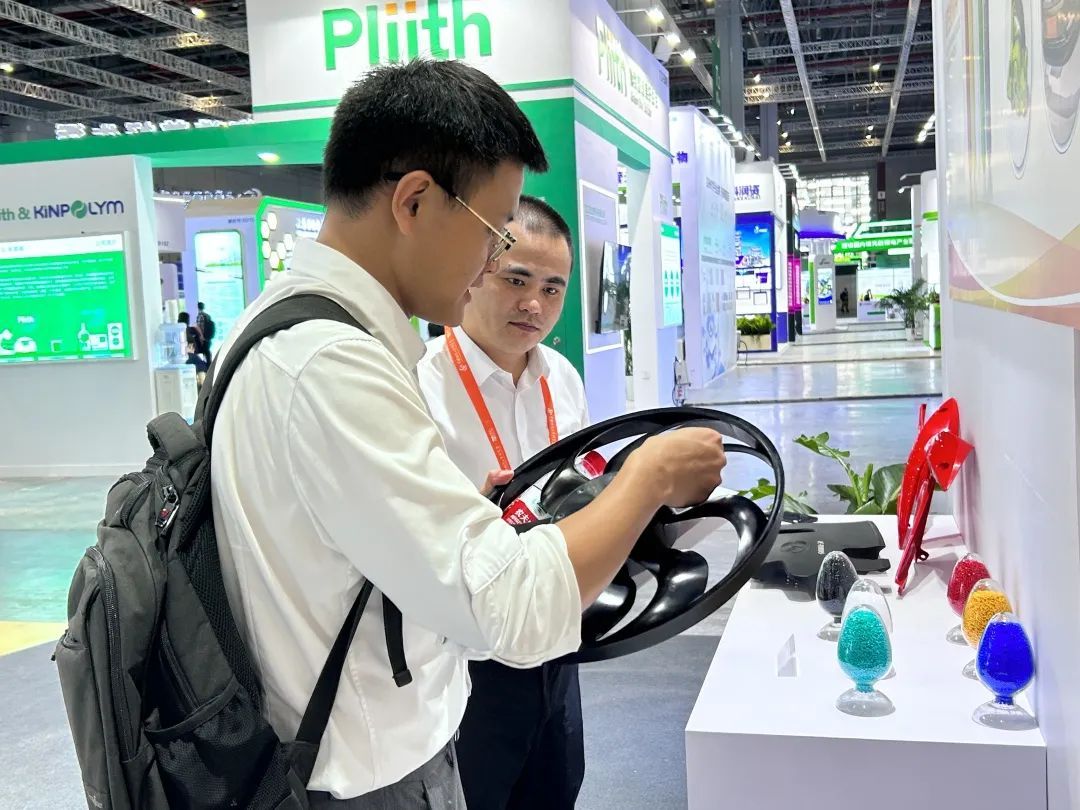 上海金发科技发展有限公司的展位前,摆放着几瓶颜色各异的“塑料小颗粒”。据介绍,这些是高端车辆轻量化高分子材料,是一种以高分子聚合物为基体,再添加其它助剂,经过填充、共混、增强等方法加工改性,提高其阻燃性、强度、抗冲击性、韧性等方面的性能的新材料,能通过改性塑料以塑代钢,替换金属材料,达到助力汽车节能减排的目的。
