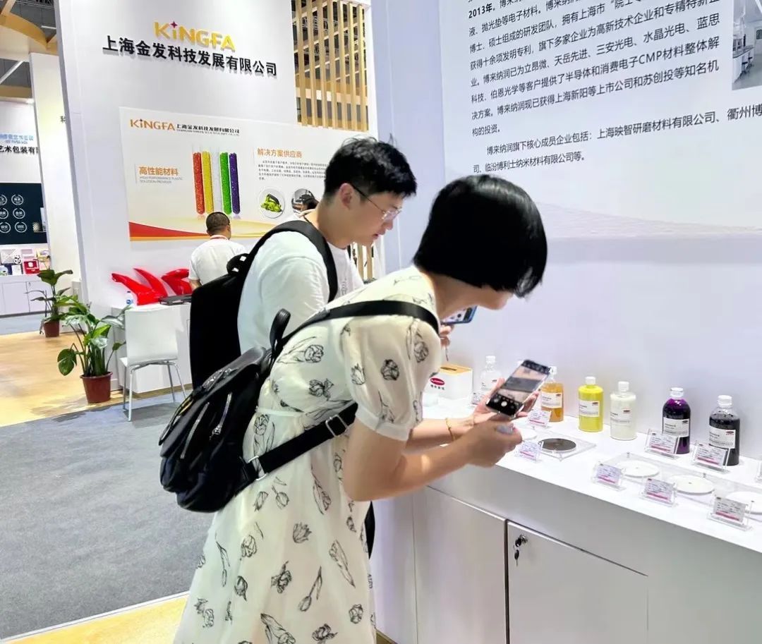 提高新材料产品质量,突破关键核心技术,对于支撑产业升级具有重要的战略意义。上海映智研磨材料有限公司带来的碳化硅衬底粗抛液copol-233和碱性碳化硅衬底抛光液copol-131能大幅度提高产品的加工效率和良率,更实现了全流程国产化,不少观众驻足展台了解细节,寻求未来合作。